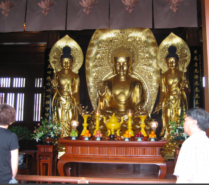 The temple hall have statues of the Sakyamuni Buddha, the goddess of mercy Guanyin and other bodhisattvas.