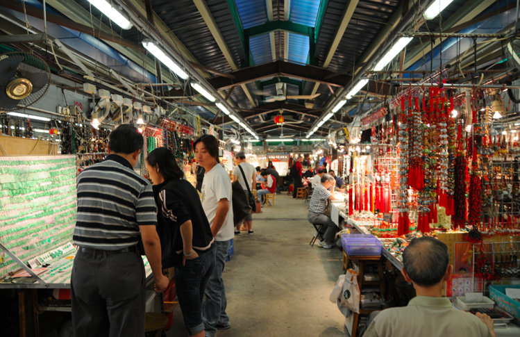 At the Jade Market in Mong Kok, Kowloon, hawkers sell various shades and qualities of the precious stone.