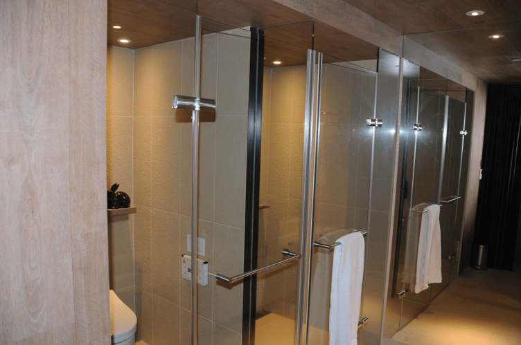 The toilet and rain shower are separate, but behind glass doors – so you should travel with someone you know and like, not with a business colleague!
