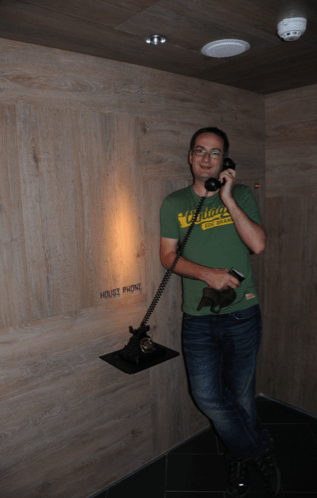 We loved the old-fashioned house phone on every floor, as this picture of Patrick shows: