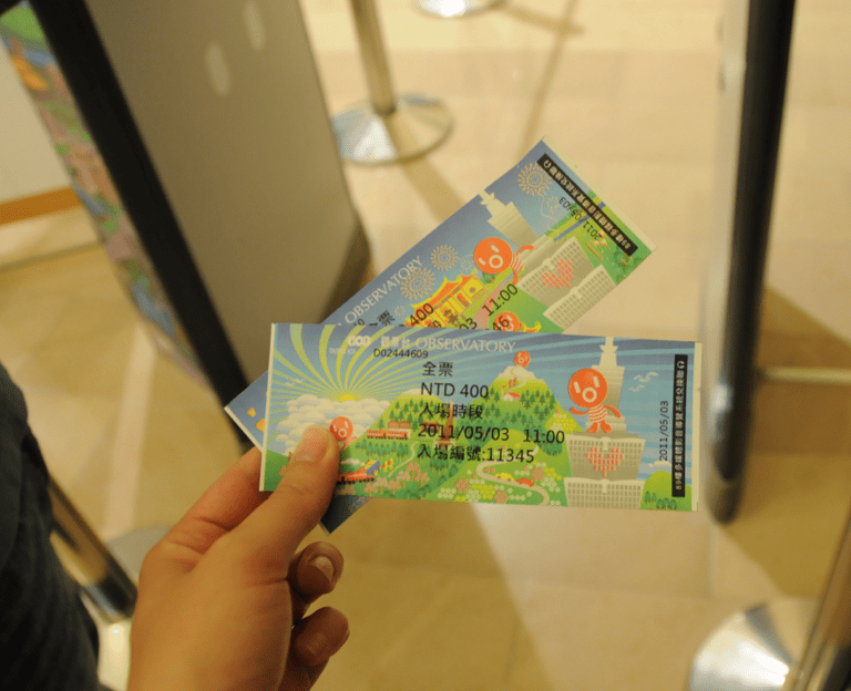 Taipei 101 comprises 101 floors above ground and 5 floors underground. You have to enter through a big shopping mall, with very high-end shops and make your way up to the fifth floor where you can purchase tickets. On the day we went, we did not have to queue. We just purchased tickets and took the world’s fastest elevator up to the top. The lift stops somewhere on the 90th floor (I don’t remember the exact floor) and when you get off, you are in an indoor viewing area.