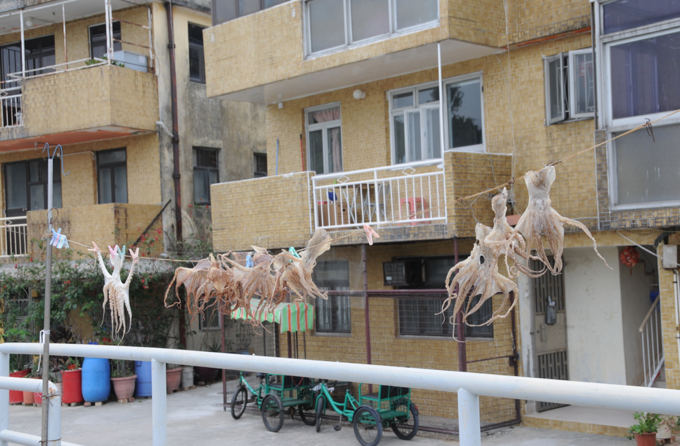 The one thing that surprised us were the squid that were hanging to dry – see this picture here? The squid just hang there, out on the beach, just on a string. I know they are a delicacy, but I can’t believe they just hang there on a string with cloth pins and we could have just touched them (we did not).