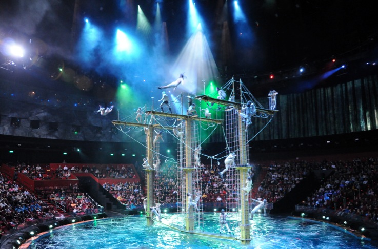 At a cost of more than USD$250 million, taking 5 years of planning and 2 years of rehearsal it is an expensive and amazing show. It combines water stunts, acrobatics, aerial arts in a purpose-built theater with the world’s largest commercial pool.