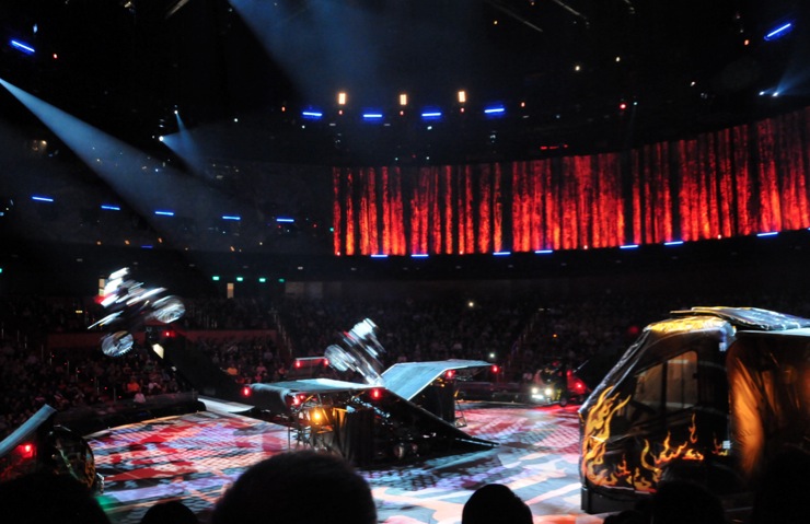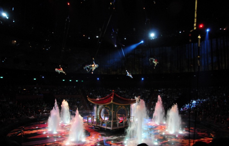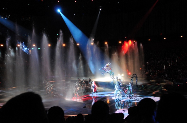 I thought it was really amazing, one minute the water pool is many metres deep so the performers can jump over 10m into the pool. A few seconds later the pool is closed and a solid surface. A few minutes later, water fountains appear through the floor, and performers run and dance around them.