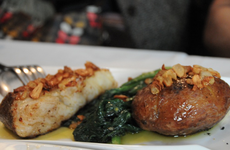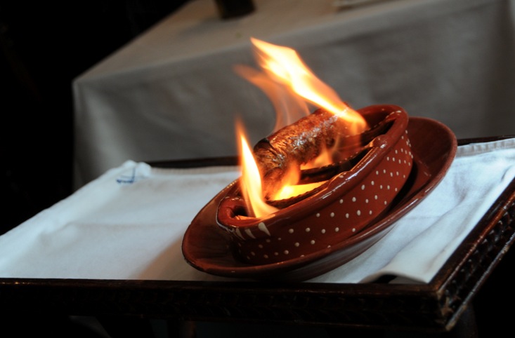 We tried the famous gratinated goat’s cheese with olive oil and honey and were blown away by the hot, spicy, garlicky homemade pork sausage. It was grilled before our eyes, in a ceramic bowl. Nice to watch, but even better to smell! Immediately we felt very hungry!