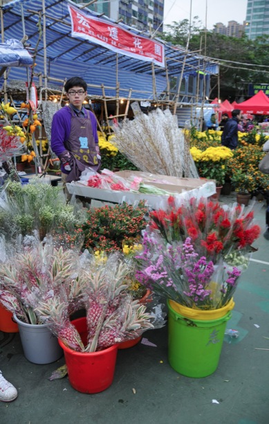 Plum blossoms (at least I believe they are plum blossoms) are very beautiful to look at – and of course, are also being sold at the Victoria Flower Market. People put them up in their homes or in offices and decorate them with red envelopes.
