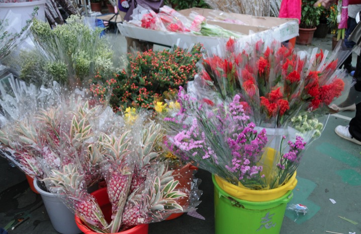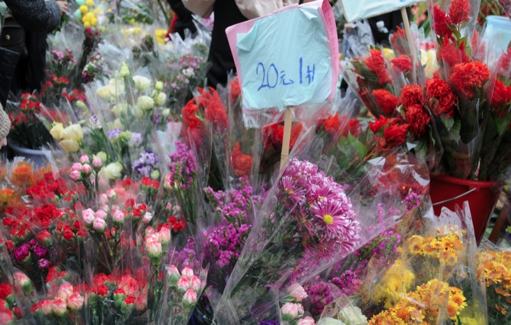 Chinese people were busy shopping and haggling for flowers. As it was the last day of the flower market, a lot of people were hoping for a bargain, trying to drive the price down as much as possible.