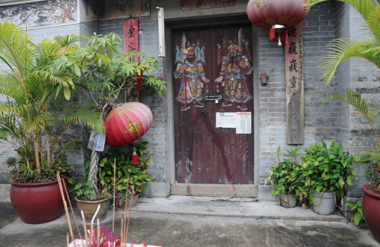The Tang Si Chung is supposedly 700 years old and built by a Tang Fung Shun, whereas the Yu Kiu hall was built much later (sometime in the 16th century). The Yu Kiu Ancestral Hall is also a three-hall building with two courtyards, completely renovated in 1995. Both ancestral halls are open 9am to 1pm and 2pm to 5pm daily. Closed on first three days of Chinese New Year – however, the doors to Tan Si Chung hall were open, so we could go inside and look at the shrine.