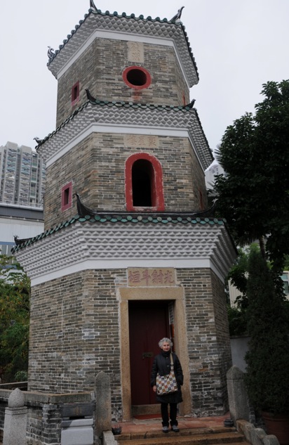 Off the train and out exit E3 we crossed the road to the first sight, the Tsui Shing Laug Pagoda. The Pagoda of Gathering Stars was originally several stories higher but according to the local Tang clan – whose ancestors built it – various natural elements have conspired to reduce its size. It could have been either lightning strikes or typhoons depending on what you read.