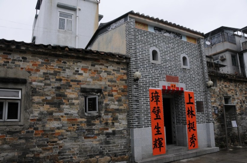 To the left is Tang Si Chung hall and on the right is the Yu Kiu Clan hall.