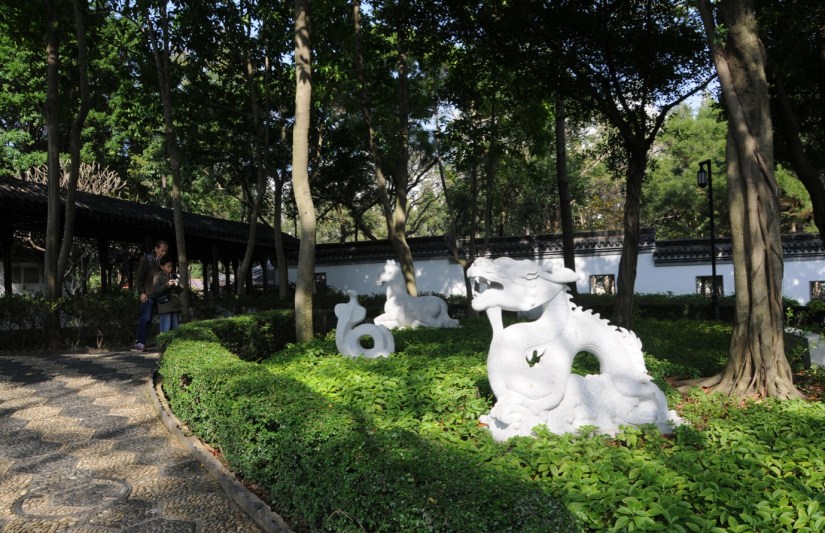The Chinese Zodiac Garden is just across from Mountain View Pavilion. The grassy enclosure is home to a dozen smooth, white-stone-sculptured animals.
