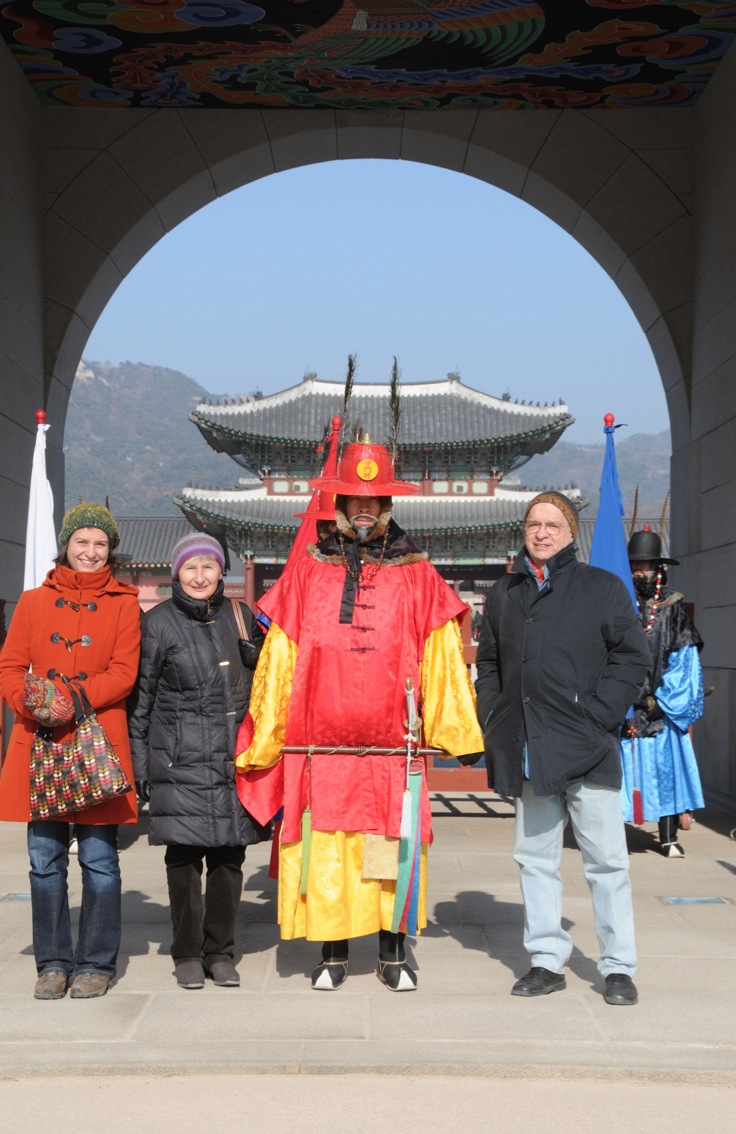 This time it was much colder, as a result with fewer people but an amazing blue sky. We started at the Gwanghamun Gate where we took some pictures with the palace guards in their colorful uniforms. I really hope that they were dressed in many layers, as it was so freezing cold on that day. I would not have lasted more than 10 minutes standing there without moving.