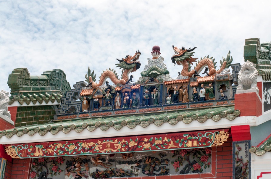 As is typical with Chinese temples, there are lots of ornaments and the prevailing colours are red and gold, to signify good luck. There are lots of good luck symbols on the inside and outside of the temple, and you can also see a number of dragons, that are said to protect the temple.