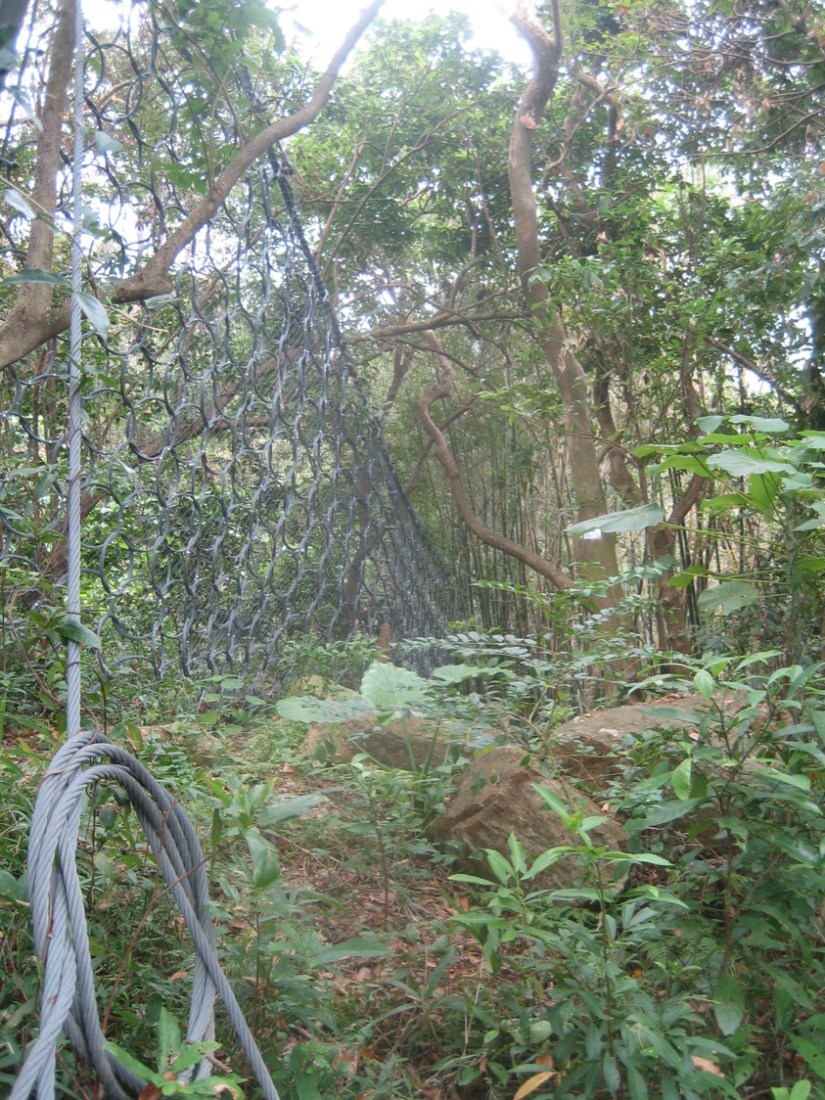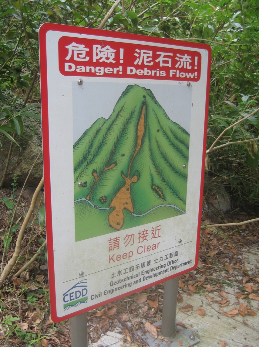 Having done 7.5k this last stretch is a nice walk mostly down tree lined tracks and at only 2.5k not too far. At the end of the steep slope, just before reaching Tai O where warning signs about debris flow.