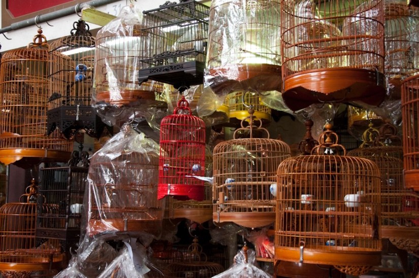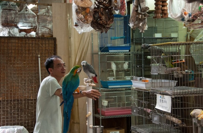 Their are some bird owners who took their birds to the market, to see others. Like they were meeting old friends for tea. How strange, sad and in a way nice. I just love how Chinese elderly (mainly men) take their pet bird with them when they go to the park. Sometimes they take them to tea houses too, but that’s less and less common in Hong Kong.