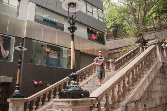 What amazes me about these lamps and this staircase is that they have survived for so long. This is in a city where any building older than 10 years is considered past the use-by date. For some reason Hong Kong people have nostalgia about this staircase, and for the few minutes we were there, we already saw one wedding photo shoot taking place and I am sure there must be many more every day!