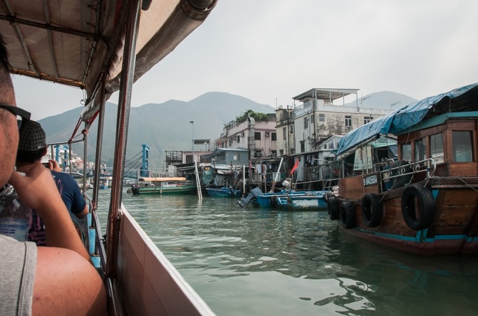A few weekends ago we planned to continue with our Lantau Trail hike and to start at stage 7 we had to go to Tai O. You can get there with a bus from Mui Wo (which has a ferry connection to Central) or from Tung Chung (which has a MTR station) but it will take some time and is on a bendy road. So we did some research and found the ferry connection between Tung Chung and Tai O, which runs about five times a day, takes around 30 minutes and cost 25 HKD one way (more details here). We arrived after an enjoyable ride at the small harbour, shortly before 10am and as it was still nice and quiet in Tai O, we decided to go for a quick boat tour (as later in the day it would be busy and you might have to queue).
