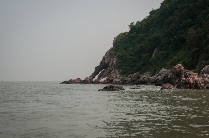 Out on the open sea we started looking for the pink Chinese dolphins that are known to live in this area. My friend Monica had been so lucky to see them in the past, but this time we were not as lucky. Maybe it was too late in the morning already, not sunny enough or the dolphins were hungry and feeding in another area. Who knows, but at least we got to see the famous elephant trunk rock!