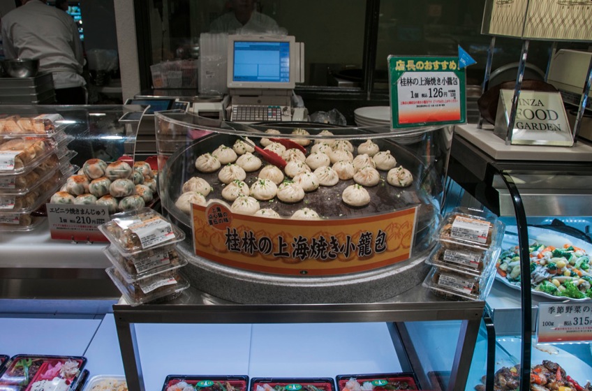 Apart from a wide range of Japanese dishes, including gyoza and sushi, Mitsukoshi also sells a wide range of Asian and Western dishes. For example, here are Chinese dumplings, which seem to be a favourite of Japanese people. We noticed quite a few Chinese dumpling places around Ginza and Shinjuku, some of them even specialising in Shanghainese dumplings (xiao long bao).