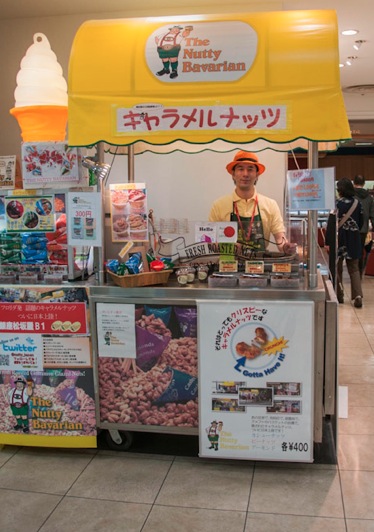 The booth was called ‘The Nutty Bavarian’ – and was run by a lovely Japanese guy. He offered us different nuts to try – telling us how great they are, that they are German quality and really delicious.