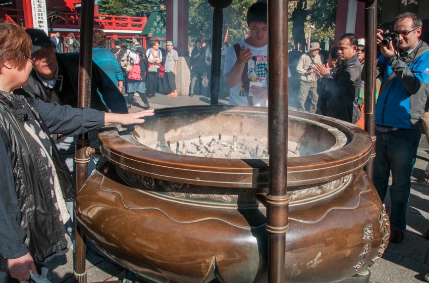 Before entering the hall there is also a large pot just before the steps in which incense is continuously burnt. People try to grab some of the smoke to spiritually cleanse or heal themselves.