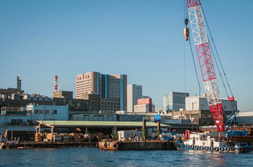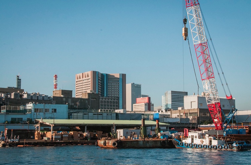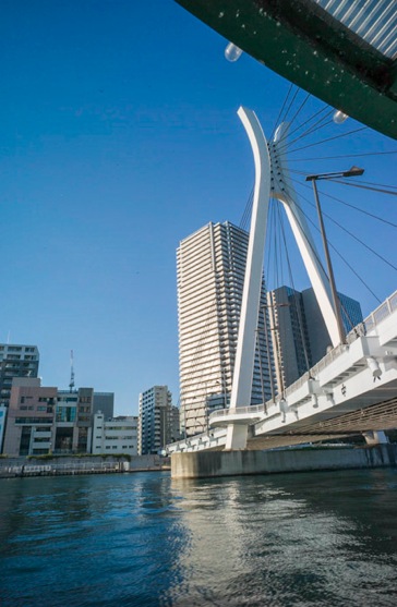 The boat took us past Hamarikyu Japanese Gardens down to Hinode, from where we could see the so called Rainbow bridge.