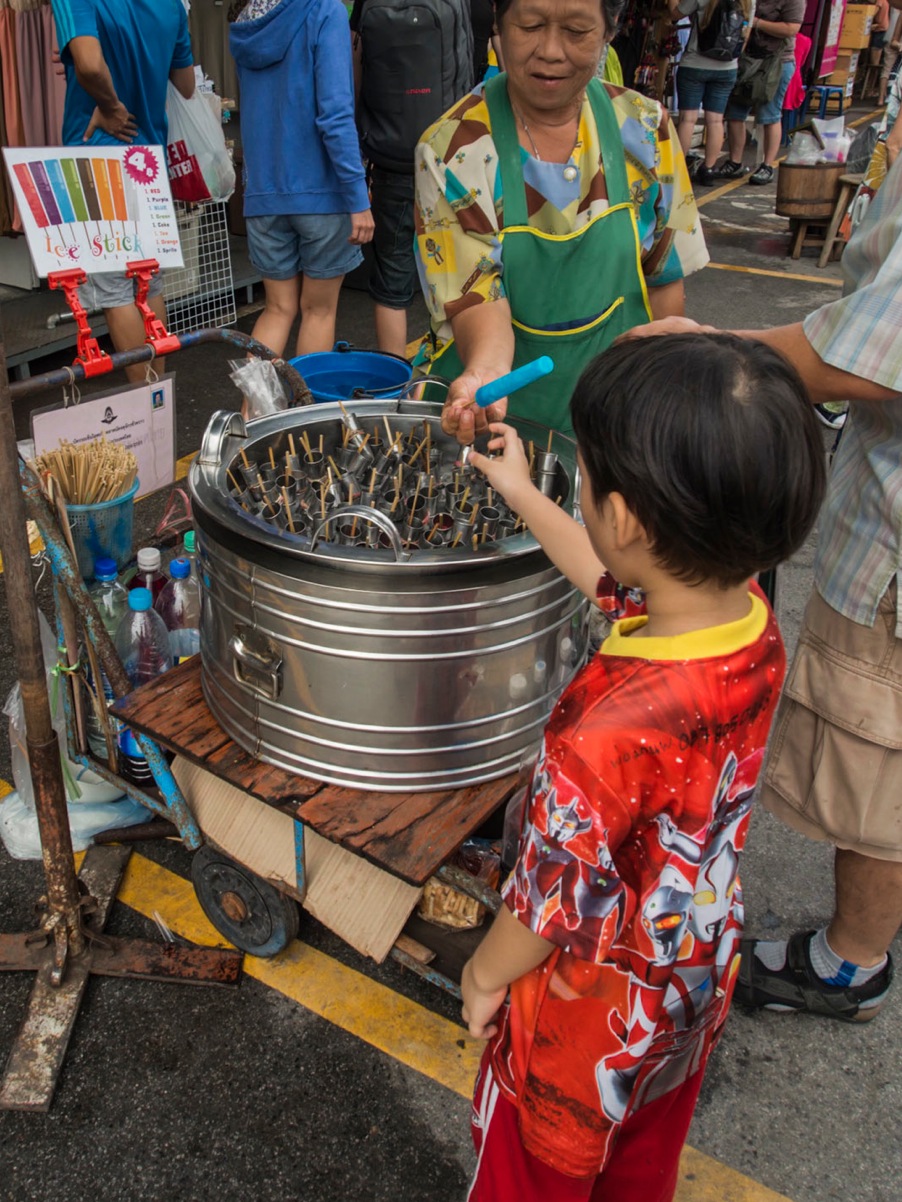 The Thai popsicle costs just 4 baht, hat’s 10 cent in Euros and 13 cent in USD. Just be careful, they are very sweet as this video about the market and the Thai popsicles sold there shows: