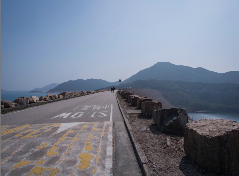 The road makes a steep ascent between two hills until it reaches a point overlooking the vast High Island Reservoir. The reservoir was created by joining an offshore island to the mainland by way of three dams. It is huge – but on the day we hiked it was almost dried out.