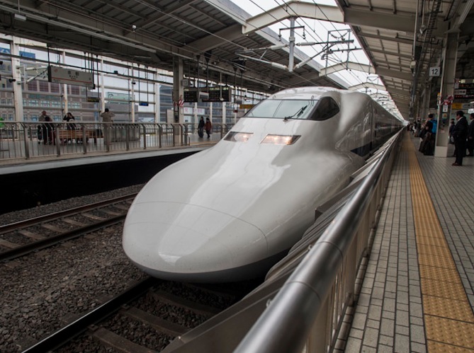 The Bullet Trains are frighteningly punctual – two seconds late on the platform and you’ll be waving goodbye to the back end of the train – and very reliable: only the severest weather conditions or earthquakes can stop them from running. We only waited for a few minutes and saw three different Shinkansen trains arrive and depart.