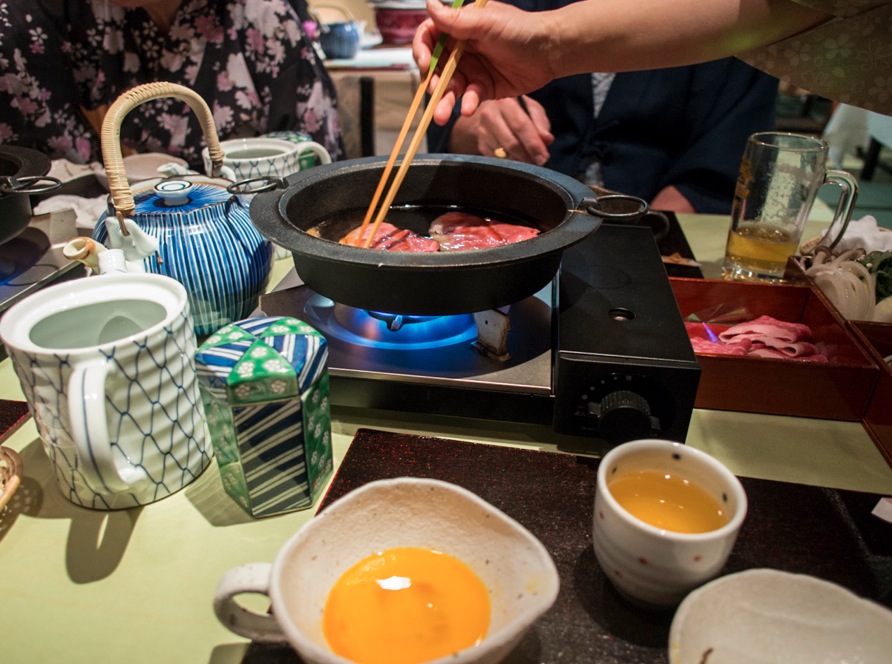On the first evening we had a BBQ and on the second one we had sukiyaki – both with local hida beef, which is excellent. Here we are experimenting with the sukiyaki, a very flavoursome dish.