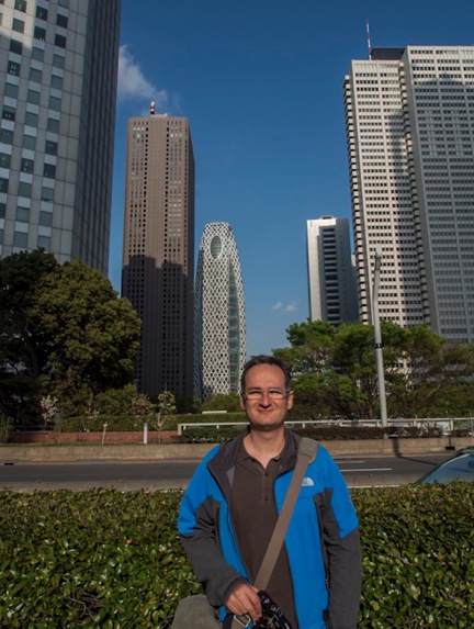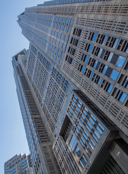 We walked a few minutes from Shinjuku Station to the Tokyo Metropolitan Main building No.1, which is 248 meters from base to top and one of the tallest buildings in Tokyo. Kenzo Tange and associates designed the building to resemble a computer chip, but it could also be a Gothic cathedral.