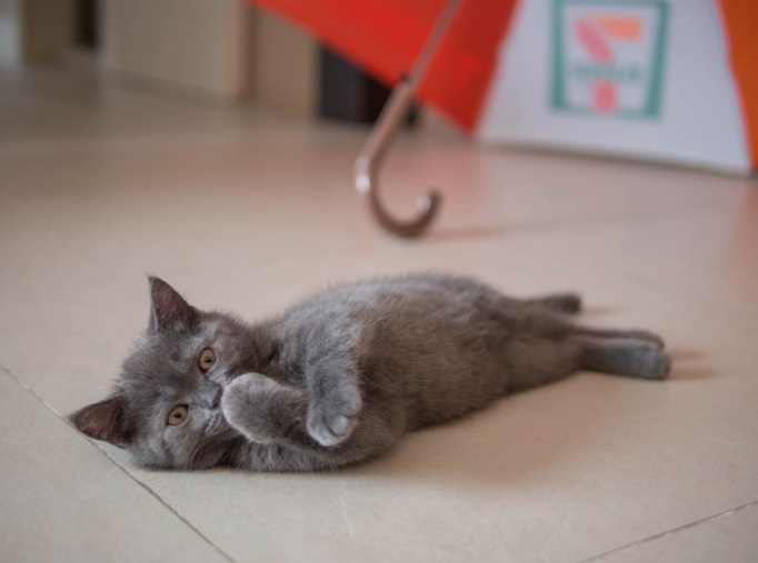 And yes of course, he loves to play. Shoe laces are one of his favourite toys, closely followed by one of the tiny balls that he chases around our flat and the sound of plastic when he plays with a packet of tissues.
