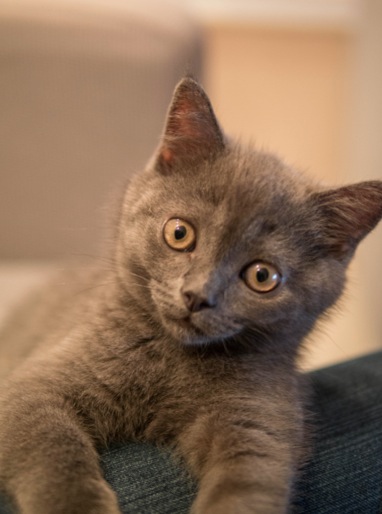 It’s Sam, our British Shorthair. He’s now 14 weeks old and a very playful, but loving and caring cat. He’s very careful when he’s exploring his surroundings! So far we’ve not had any breakages or damages, let’s hope it stays this way.