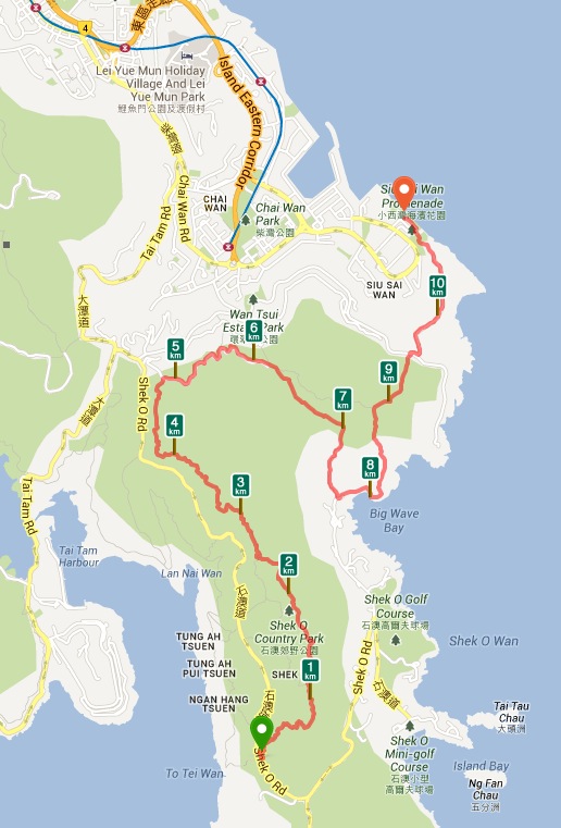 • Follow Bowen Road all the way (3km) until you hit the Peak tram at Magazine Gap Road