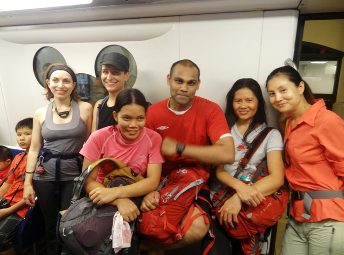 After the fireworks we walked downhill to Disney to catch a train back to Sunny Bay -all the kids and families must have been a little surprised to see a bunch of sweaty hikers joining them for their ride!