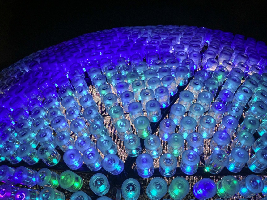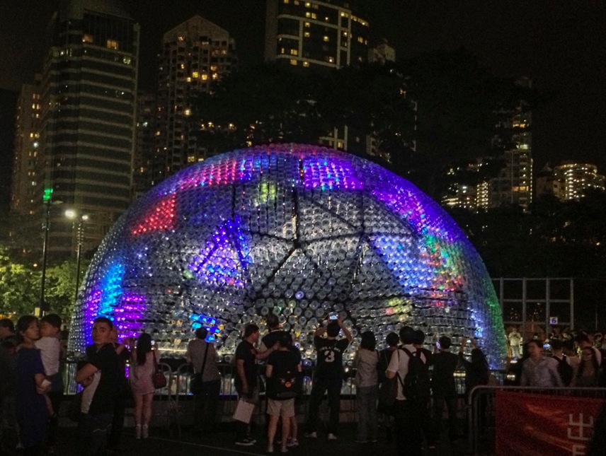 Inside the dome, which can host up to 100 people at a time, are 2,300 smaller bottles suspended in the air. Those are just the standard, 1.5-litre bottles, that you can get everywhere in Hong Kong.