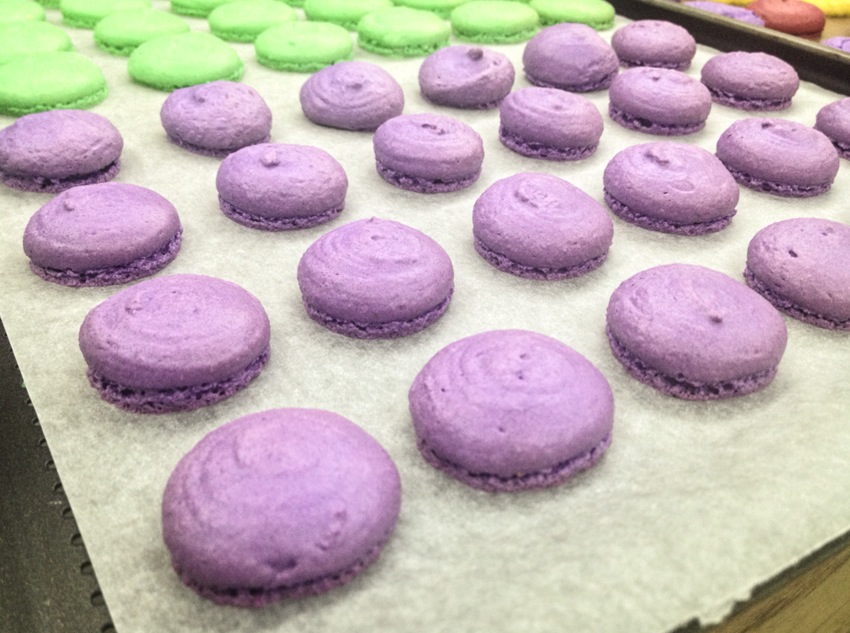 I could not get my macarons to have a clean, neat and even top. All of mine have a tiny little peak from where I pulled the dough away. I guess it all comes with practice!
