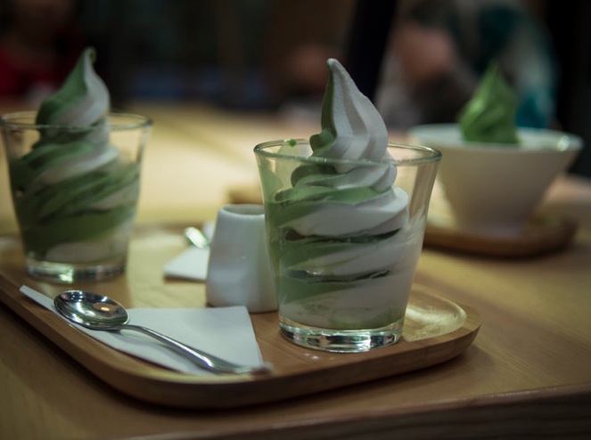 We were lucky, the place was full but we could grab a seat. It is a cozy small place, with a nice, atmosphere. The menu is quite big with lots of different ice cream options to choose from. Via Tokyo specialises in matcha and milk “soft cream” along with traditional Japanese desserts.