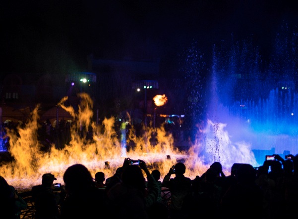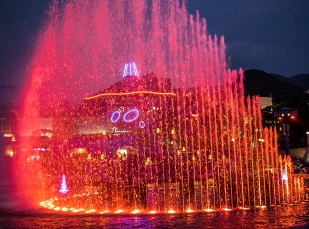 We visited the Grand Aquarium and then it was showtime – for the Symbio show. This is Ocean Park’s signature night show performed every day at the Aqua City Lagoon. The circular fountain of the lagoon becomes a projection screen for a show filled with dragons. What surprised me the most were the fire effects – on a pool of water. It was really well done!