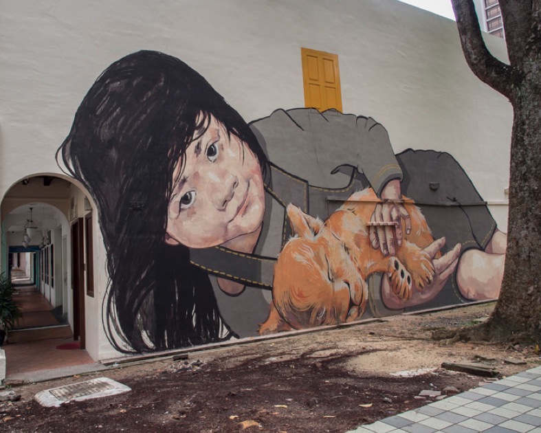 She showed me some murals that were close to the cafe. First up, a giant girl caressing a lion cub by Ernest Zacharevic along Victoria Street: