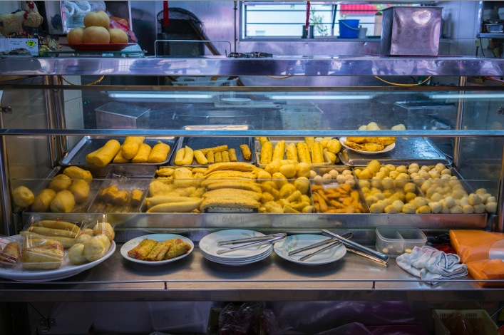 … and then there were lots of fried dishes, made out of different ingredients. I’m not sure what the picture below shows, but I’m assuming these are all dishes made out of fish paste. Or it could be bean curd. Difficult to tell for me.
