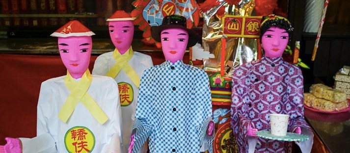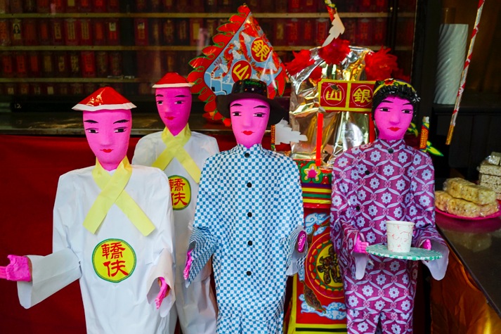 Many temples have large furnaces outside the main gate to burn joss paper or items. Folding the paper is an important part of the burning ceremony as it distinguishes joss paper from actual money. Burning actual money would be untenable for most people, and is also considered unlucky in Asian cultures. The Joss paper may be folded into specific shapes which are meant to bring on good luck and people tend to burn lavish amounts to ensure that the offering is well received. But I really wonder what they do with the big houses – the one I took these pictures of was at least 1 metres tall!