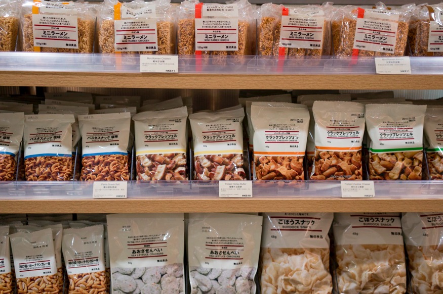 All the MUJI stores in Hong Kong carry a wide selection of food and drinks, but those are all packaged items. There’s no fresh food in store. Still, the selection is mind-blowing and there’s always something new to try.