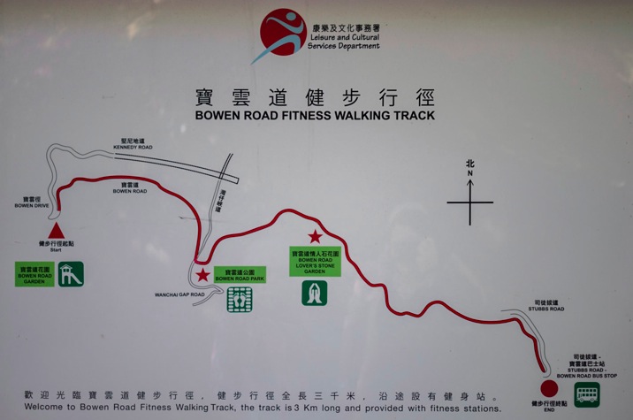 I took my parents to Bowen Road – which runs from Magazine Gap Road in the West to Stubbs Road in the East. It is flat, easy to access and what makes it nice is that it is a tree-lined route with great views over the city.