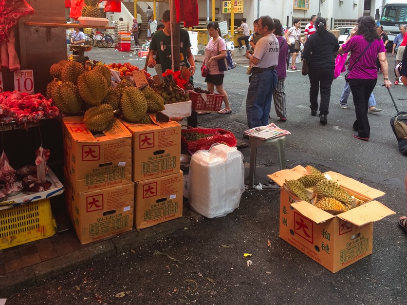 Walking through the narrow roads of the Bowrington Road Market in Wan Chai, there were boxes next to boxes of Durian fruit. And my pictures are misleading, there were lots of people looking for the freshest fruit and the best prices!