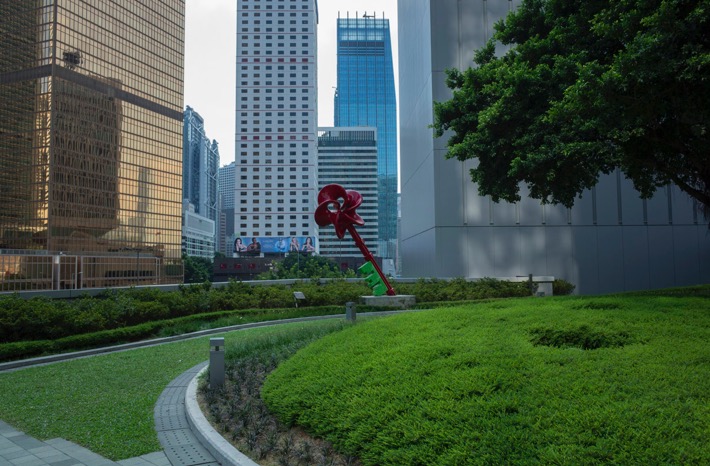 Then walk over the footbridge (which used to be the heart of Occupy Central and the Umbrella Movement), look at the interesting artwork (you can sit on the bench or the leaf) and then walk over to the waterfront.