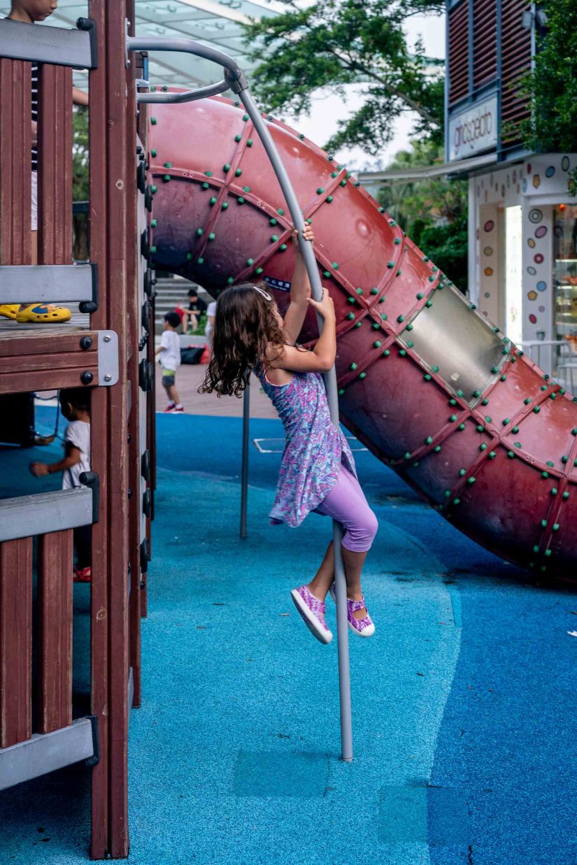 After running and racing around Blake Pier and Murray House, we usually take a break at Stanley Plaza. Once we had something to eat, the kids are free to explore the playground at the plaza, which is built in form of a big pirate ship. The kids like to race around it with their scooters and bikes, or just climb up and slide down, playing with the other kids. That’s the good thing, there are always other kids around and you can just sit next to the playground and watch them all.