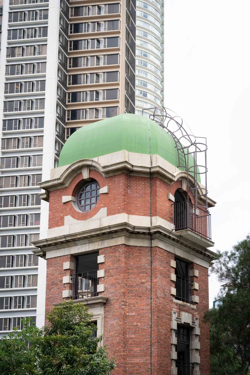 The Edwardian-style Signal Tower was built in 1907 by the Hong Kong Observatory to signal accurate time to the mariners and the public. There was a ball on top of a mast on top the Signal Tower, and from 1908 to 1920, the time ball at Signal Tower dropped once daily at 1pm to the foot of the mast. From 1920 onwards, the time ball dropped twice a day at 10 am and 4 pm until 1933.