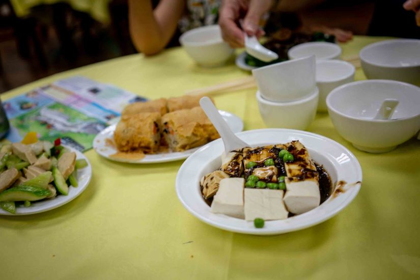 The monastery also offers a vegetarian lunch to its visitors – there are two menus to choose from, but it basically includes some bean curd, mushrooms, stir fried mixed vegetables, spring rolls and rice. Nothing fancy, but decent food for a fair price (around 120 HKD per person including as much tea and soup as you like).